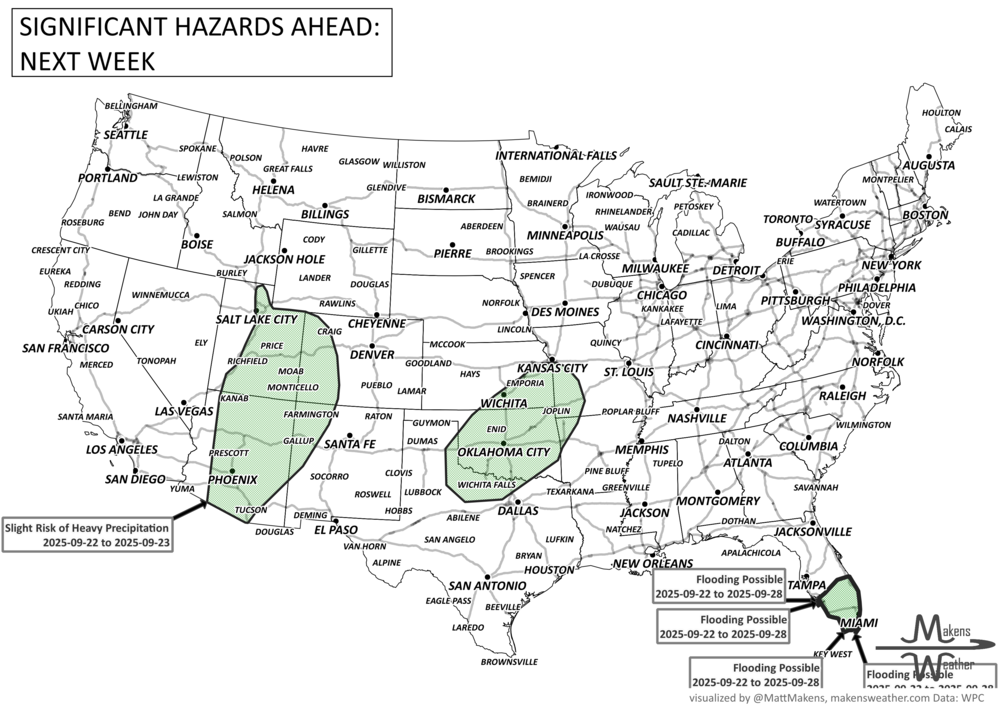 South Florida: Heavy rain risk continues for the Miami–Palm Beach corridor.