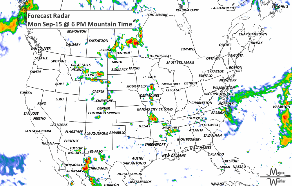 Northern Plains to Upper Midwest: Scattered thunderstorms continue early week.