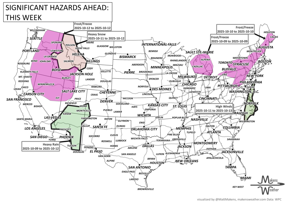 • Chill sets in behind the front with freeze alerts in the Upper Midwest.Thursday-Friday: