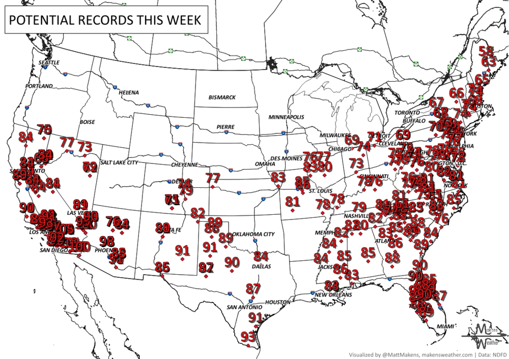 RECORDS MADE TO BE BROKEN, DAILY HIGHS (RED) | DAILY LOWS (BLUE):
